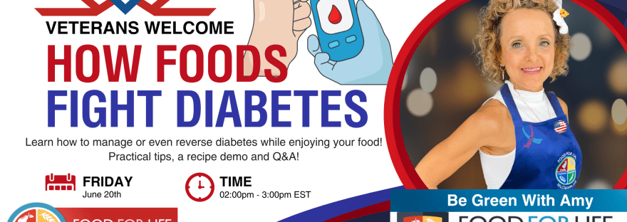 Are you a veteran looking for ways to take control of your blood sugar and improve your health naturally? Join this engaging and informative virtual class designed specifically for veterans who are managing diabetes or concerned about blood sugar levels. In this interactive session, you'll learn: Proven strategies to naturally manage and lower blood sugar How daily food choices impact insulin sensitivity and diabetes risk Common "healthy" foods that may actually raise blood sugar Tips for weight loss, reducing medication, and preventing complications The class includes a live cooking demonstration featuring a simple, satisfying recipe that supports healthy blood sugar. You’ll also get a chance to ask questions during the Q&A session and leave with practical tools you can use right away. This free class respects the unique experiences and challenges of veterans and provides realistic, easy-to-follow guidance for long-term wellness. Whether you're newly diagnosed or simply want to make better choices, this class will give you the support and inspiration you need.